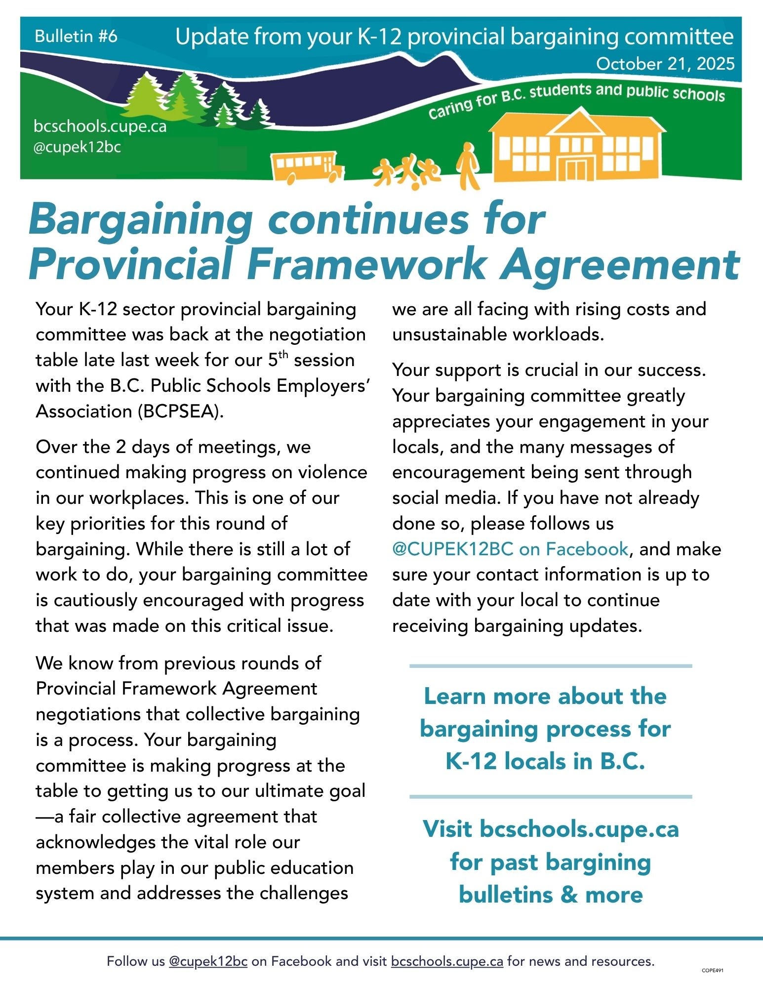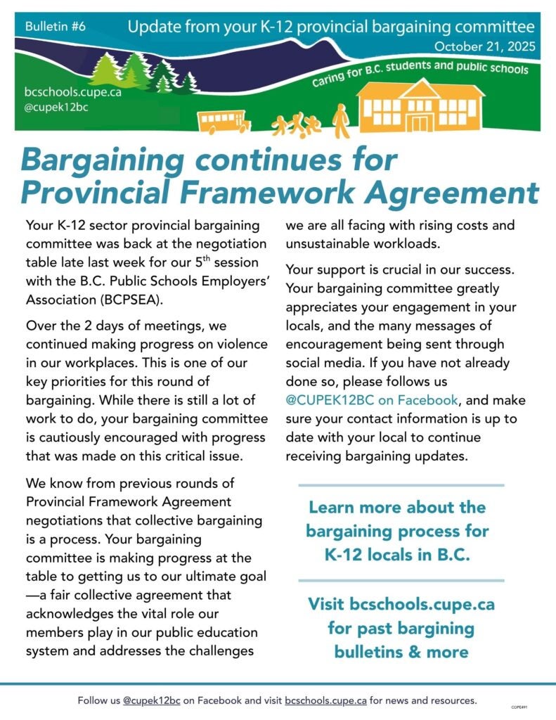 Did you know that the K-12 Presidents Council is getting ready to go into bargaining at the provincial level? This is where wages and benefits are discussed. Don’t forget to do the Survey (deadline is Dec 17). These items are for all CUPE locals under the K-12 Sector in BC (not just for Local728). Once this is completed, we will be able to start bargaining at our local’s level.