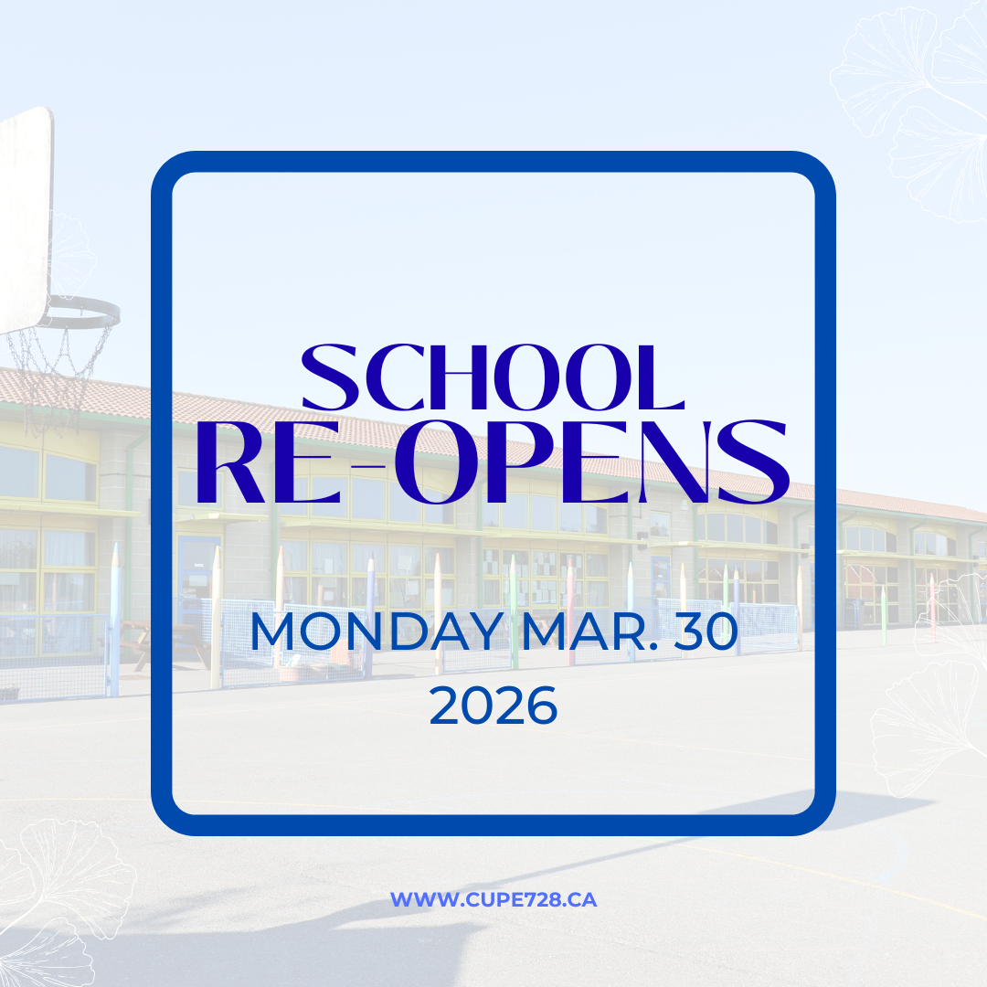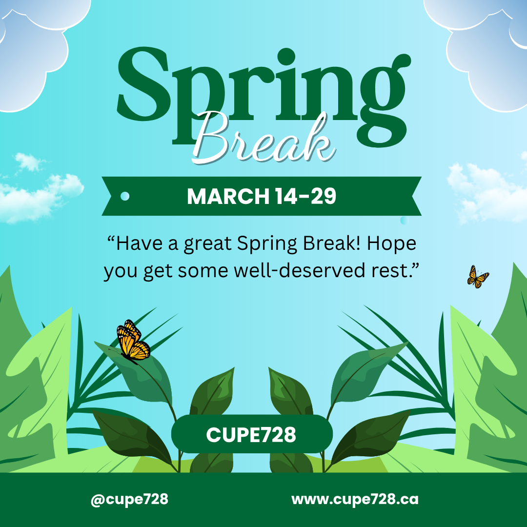 CUPE728 would like to wish you a restful and joyful winter break! You’ve earned every moment of it — enjoy the time to relax, recharge, and spend it with the people and things you love.  For those 728 members that are working over the Winter Break, we thank you for your dedication. Your work does not go unnoticed and we are proud of each one of our members!
