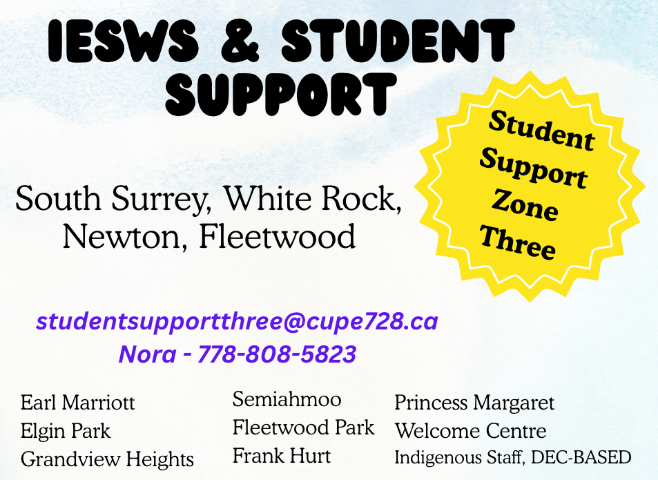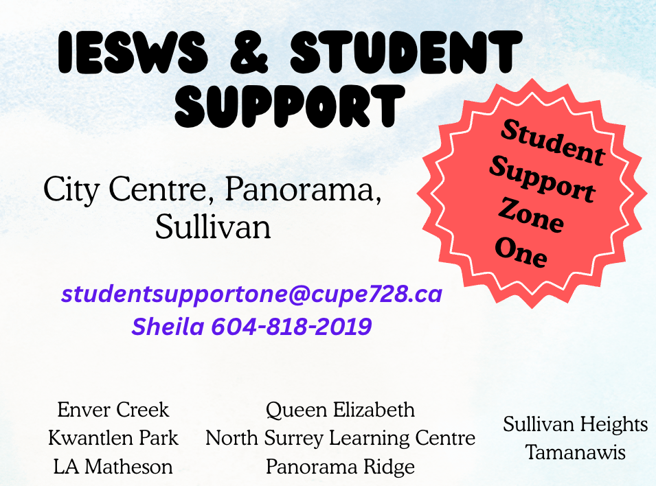 If you are a part of the Student Support Unit in SD36, you can find information provided by your Shop Steward pertaining to your specific job on this page. This page will be continually updated so please check back frequently.