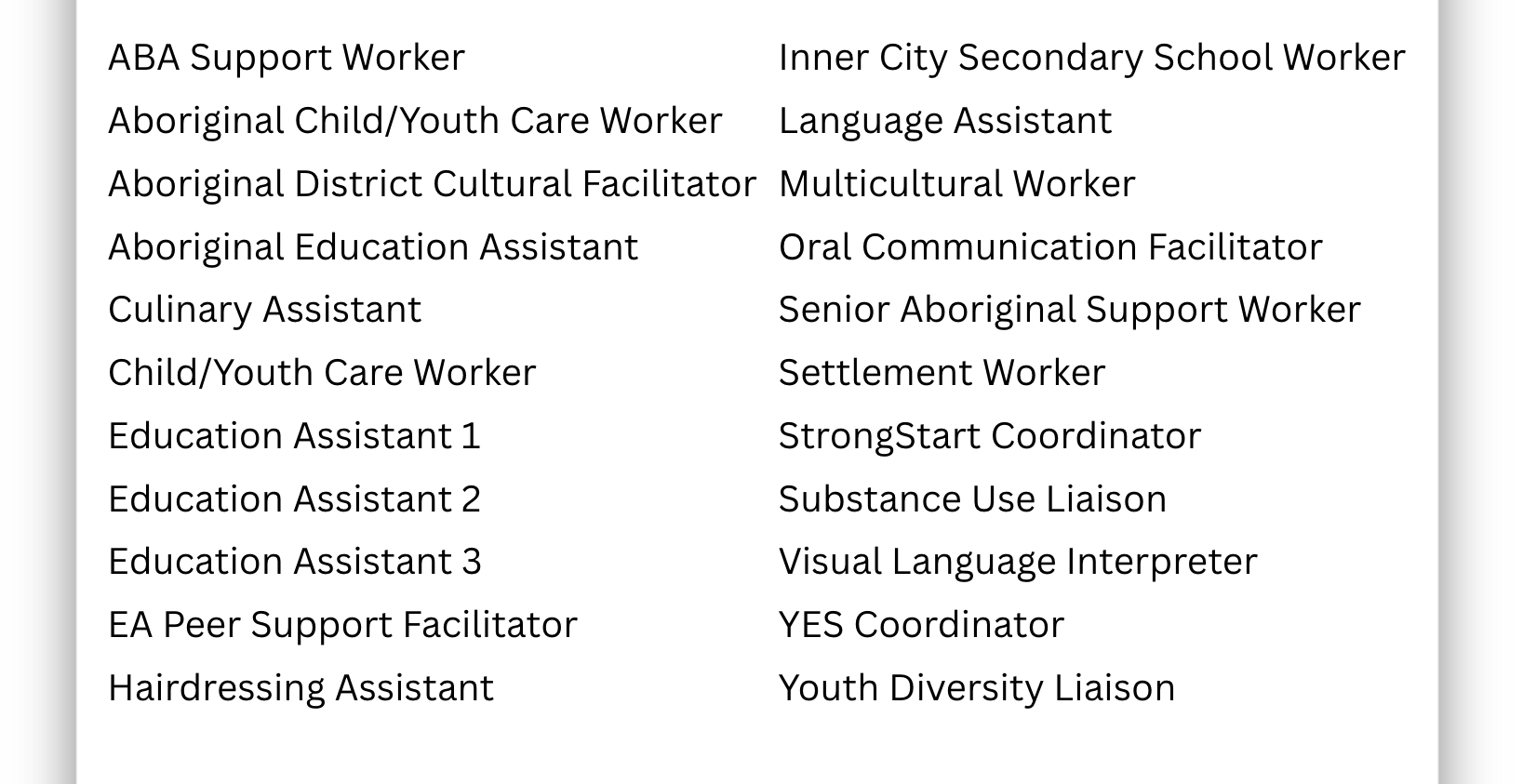 - Aboriginal Child/Youth Care Worker